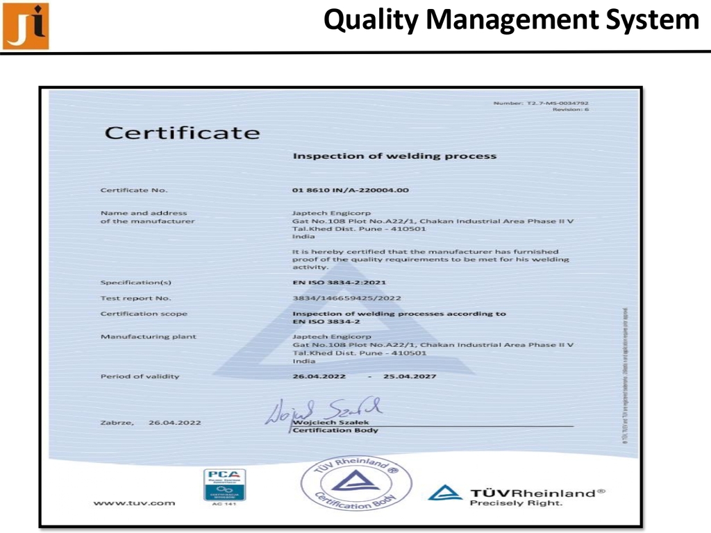 To be proactive organization in manufacturing and supplying of Quality product and strive for customer satisfaction through continuous improvement in products, processes and services.